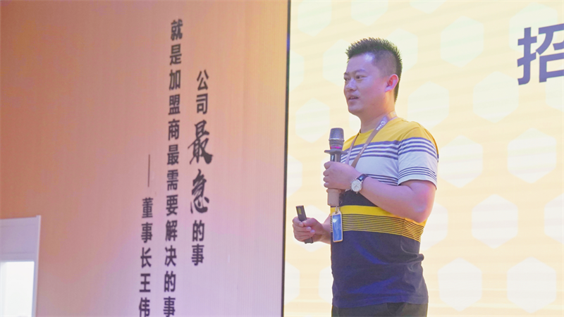 招商運(yùn)營(yíng)中心總監(jiān)許周,以“不忘初心,再次啟航”為主題,分別從代理商成立的初衷、職責(zé)、權(quán)益等角度展開(kāi)分享交流。他表示,在品牌高速發(fā)展階段,門(mén)店體量、品牌影響力都呈現(xiàn)出指數(shù)化爆發(fā)趨勢(shì),需要完善的品牌代理機(jī)制,來(lái)承載品牌高速發(fā)展的勢(shì)能。通過(guò)總部鏈接代理商的力量,共同開(kāi)拓空白市場(chǎng),并肩輻射周邊城市。依托總部強(qiáng)大的后盾力量,用實(shí)際行動(dòng)幫助優(yōu)秀加盟商升級(jí)代理,讓創(chuàng)業(yè)變得更簡(jiǎn)單。