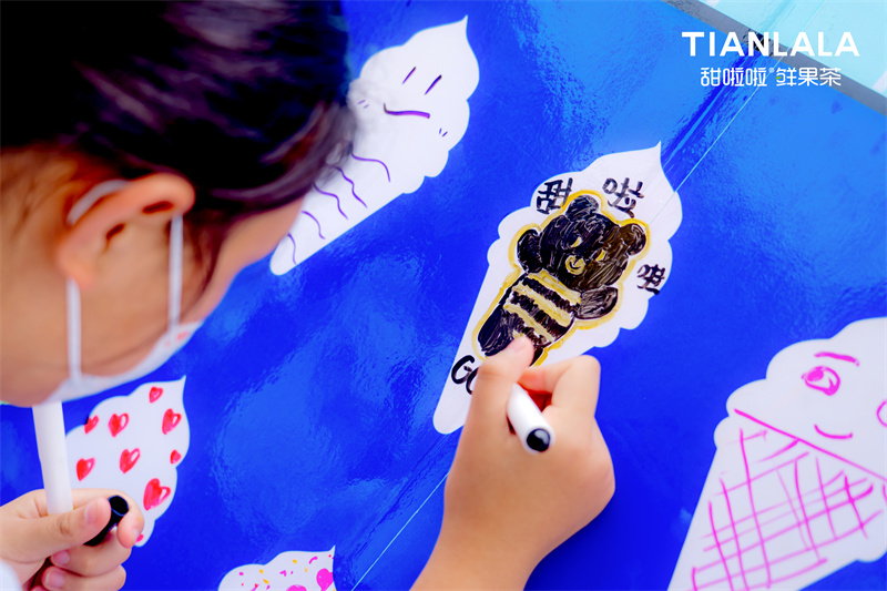 小朋友在涂鴉區(qū)繪制卡通冰淇淋圖樣