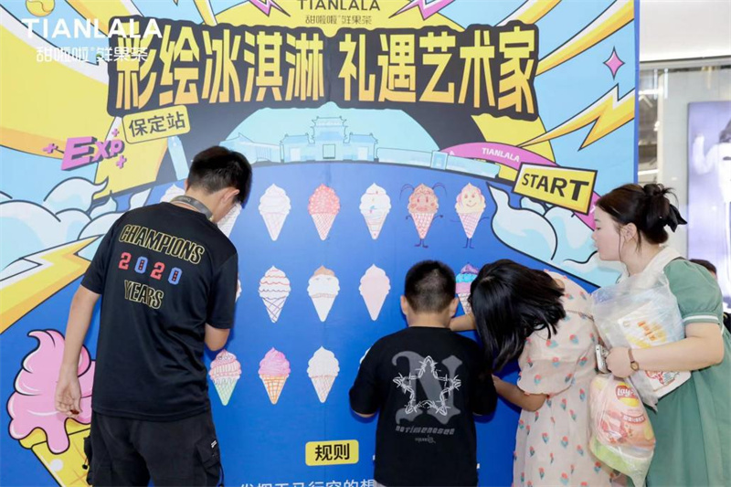“我第一次打冰淇淋,太有趣了,我家孩子比我還興奮,說媽媽打的冰淇淋好甜,太開心了”一位挑戰(zhàn)者大聲分享到。除了冰淇淋挑戰(zhàn)賽,現(xiàn)場(chǎng)還設(shè)置了有獎(jiǎng)互動(dòng),涂鴉打卡贏飲品優(yōu)惠券,掃碼可得刮刮樂,有甜啦啦的周邊禮品,還有驚喜彩票大獎(jiǎng)?,F(xiàn)場(chǎng)人聲鼎沸,盛況空前,“暑假孩子們都出來(lái)玩了,像今天這么多人還真是第一次,甜啦啦太火了?!爆F(xiàn)場(chǎng)萬(wàn)達(dá)廣場(chǎng)工作人員表示。