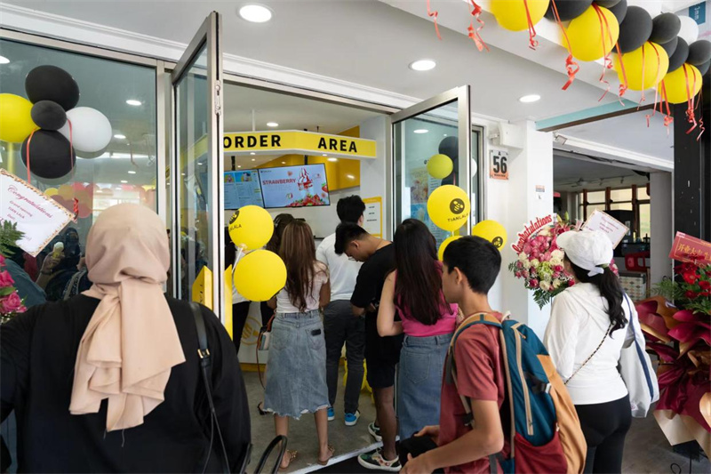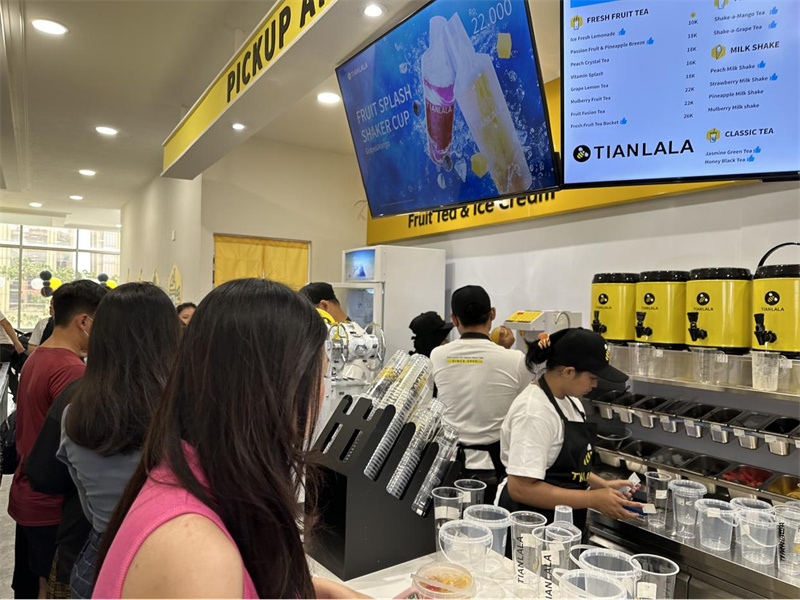 甜啦啦10月1日印尼6店同開,基本位于雅加達(dá)市中心繁華地段,店面裝修保留甜啦啦標(biāo)準(zhǔn)的品牌色,配合時(shí)下流行的多巴胺色彩美學(xué),明亮吸睛,時(shí)尚美觀,充滿現(xiàn)代感。店內(nèi)飲品種類繁多,除了延續(xù)國內(nèi)明星產(chǎn)品“一桶水果茶”“一桶全家福”外,還包含水果茶、冰淇淋等產(chǎn)品。開業(yè)儀式當(dāng)天,甜啦啦印尼新店吸引了大量顧客前來打卡。許多顧客表示,甜啦啦的產(chǎn)品口感清爽,水果新鮮,真材實(shí)料看得見。
