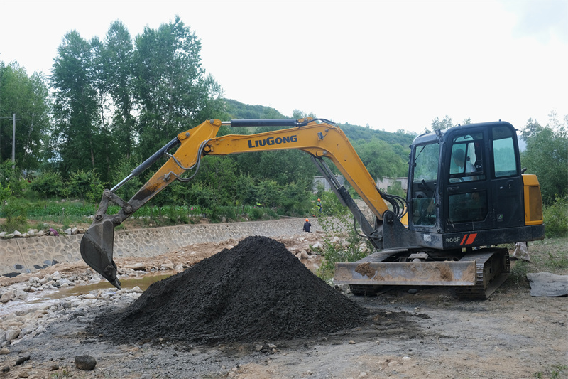 圖8 新茶飲公益基金捐贈的挖掘機正在清理村莊河道