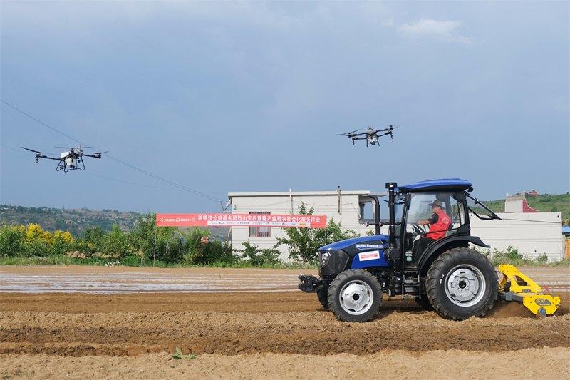 最后在農(nóng)機作業(yè)示范田,新茶飲公益基金代表現(xiàn)場觀摩了農(nóng)機服務隊開展農(nóng)機作業(yè),只見新型旋耕覆膜一體機高效完成整地作業(yè)、植保無人機精準實施肥料噴灑,整套作業(yè)流程較傳統(tǒng)人工耕種方式的效率大大提升。
