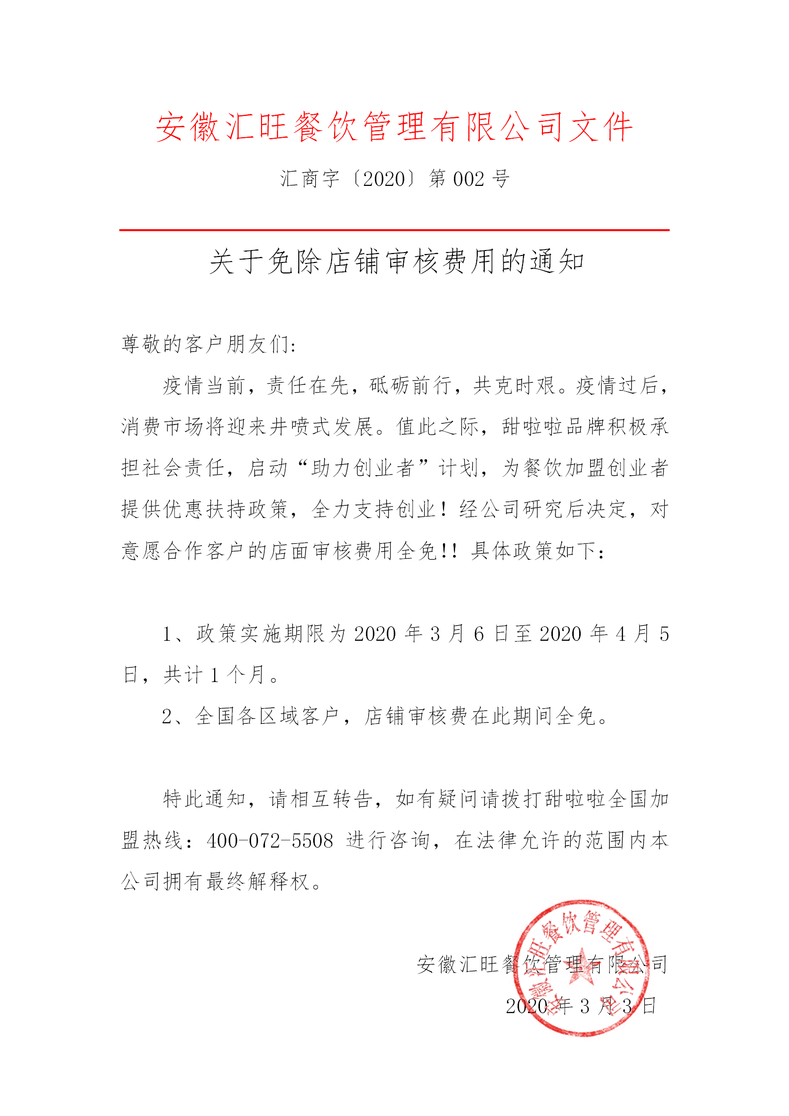 關(guān)于免除店鋪審核費(fèi)用的通知