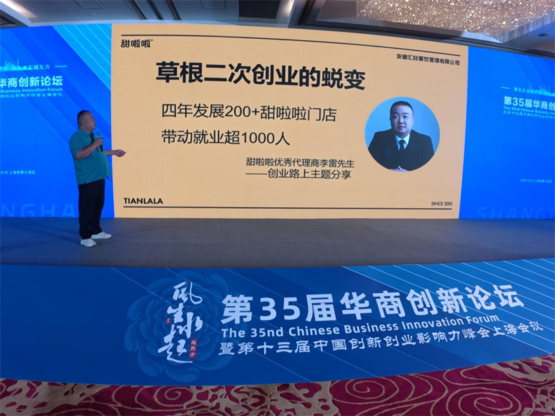 2025年8月16日,新茶飲品牌甜啦啦超級(jí)代理商李雷受邀參加華商創(chuàng)新論壇組委會(huì)主辦的第35屆華商創(chuàng)新論壇暨第十三屆創(chuàng)新創(chuàng)業(yè)影響力峰會(huì),現(xiàn)場(chǎng)李雷被授予“2025年度華商領(lǐng)袖新銳創(chuàng)新人物”并展開(kāi)主題分享。