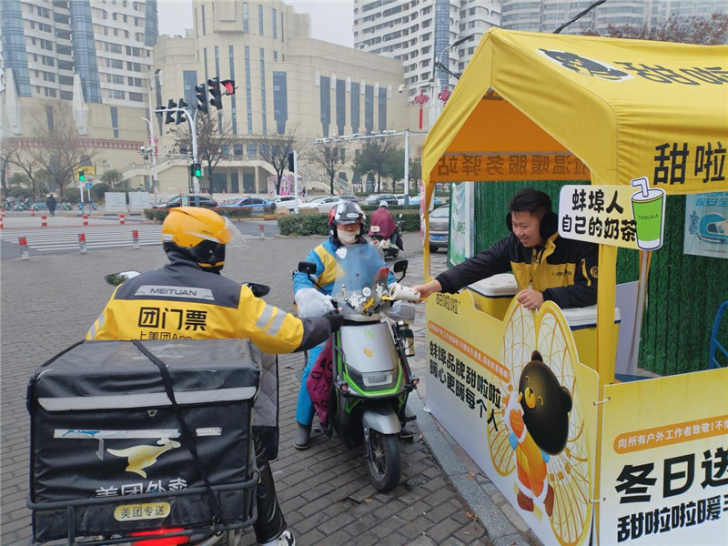 12月15日,在全省氣溫“蹦極式”下降的時(shí)期,茶飲品牌甜啦啦正式啟動(dòng)2023年度“冬日送溫暖”活動(dòng),為蚌埠戶外一線工作者,帶來溫暖與問候。