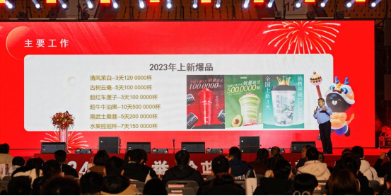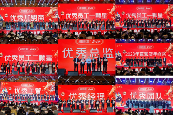 聚智馭新,領(lǐng)創(chuàng)非凡。甜啦啦2023年蓄力迸發(fā),年度新增門店2400家,穩(wěn)居行業(yè)前列;明確質(zhì)價(jià)比戰(zhàn)略方向,打造清風(fēng)茉白鮮奶茶、超牛牛油果等超人氣爆品;全力部署出海計(jì)劃,8家門店落子印尼。此外,甜啦啦品牌也活躍在各大行業(yè)峰會(huì),斬獲“2023中國(guó)飲品年度最具商業(yè)價(jià)值品牌”獎(jiǎng)、入選“2023年度質(zhì)量金盾案例”、躋身“2023新國(guó)貨CoolTop10出海榜 ”、榮登“2023中國(guó)餐飲出海先鋒TOP20”榜單……2023年的成績(jī)離不開眾志成城的付出與努力?,F(xiàn)場(chǎng),王董為2023年度優(yōu)秀甜啦啦人頒發(fā)殊榮,對(duì)大家一年的努力表示肯定。