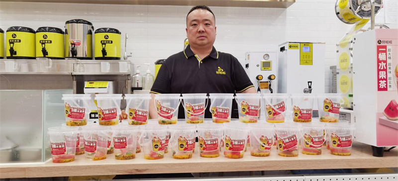 圖注:李雷廊坊“翻身仗”:一桶水果茶買一送一活動(dòng)