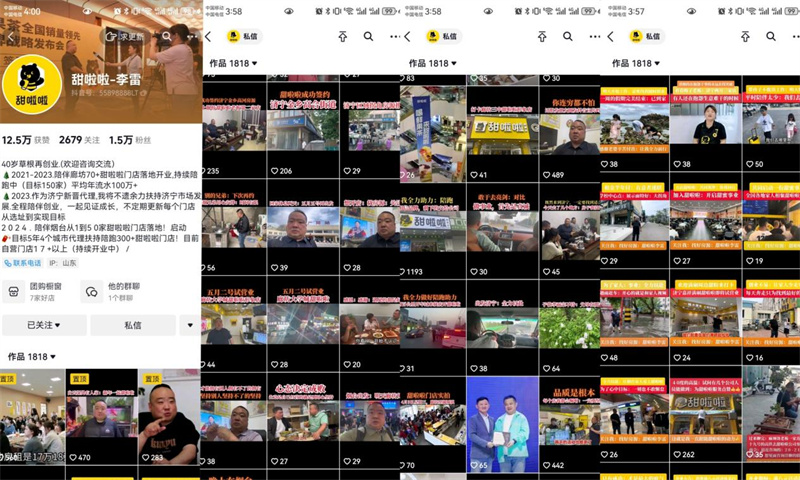 圖注:李雷個(gè)人抖音賬號(hào),記錄創(chuàng)業(yè)點(diǎn)滴