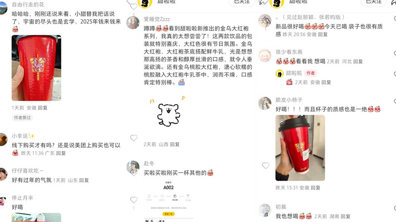 在社交平臺上,消費者對于金烏大紅袍鮮奶茶的喜愛程度超乎想象。關(guān)于甜啦啦新品的討論熱度持續(xù)攀升,眾多消費者分享了自己的品嘗體驗和對新品的好評?!敖馂醮蠹t袍鮮奶茶的味道真的太贊了,大紅袍的茶香和牛奶的香甜完美融合,而且活動也很有意義,支持甜啦啦!”一位消費者在社交平臺上留言道。